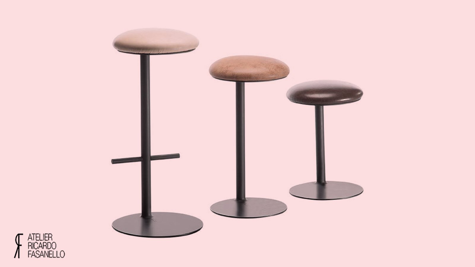 There are 3 variations; bar stool, counter stool and table stool, reflecting the inspiration - ciranda is a popular children’s game in Brazil. Each has a durable carbon steel structure and a foam upholstered seat. The strength of the structure contrasts nicely with the softness of the metal finish and leather. A series of sidetables are also available in 3 sizes.