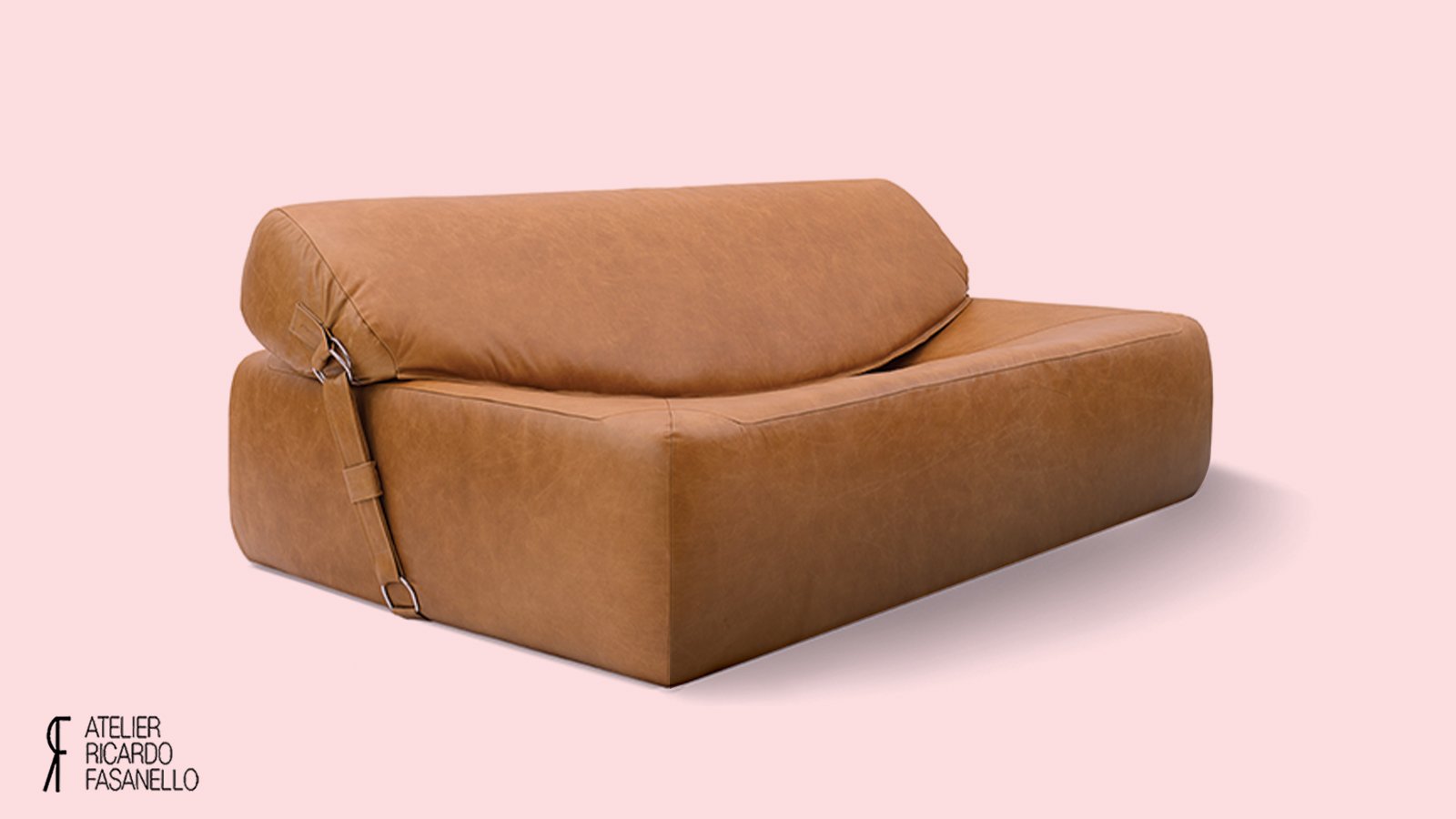 The L.S sofa was inspired by the cable cars of Santa Teresa in Rio, home to Fasanello’s studio; when reaching the end of the line the drivers turn the backs of the seats to face the direction of the return journey along the same track.