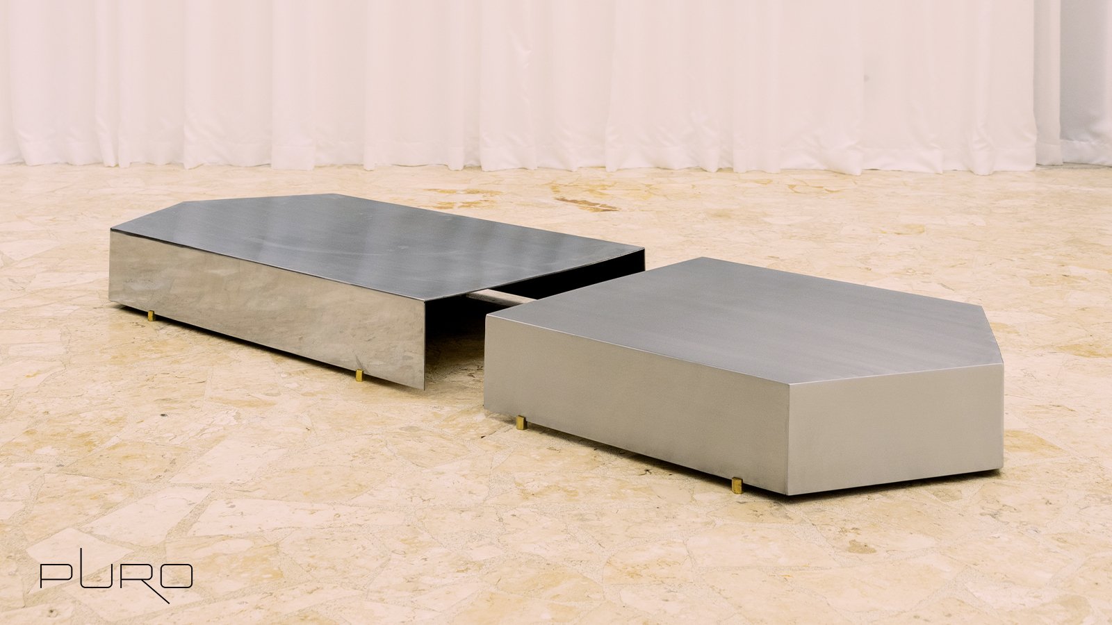 The Mantiqueira coffee table is composed of two distinct stainless steel modules; one polished and the other brushed. As a result the piece explores subtle contrasts of texture and reflection.