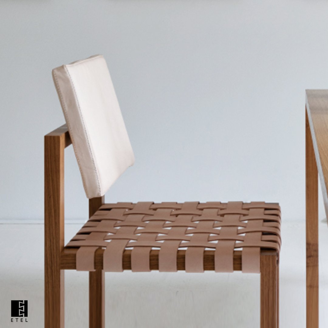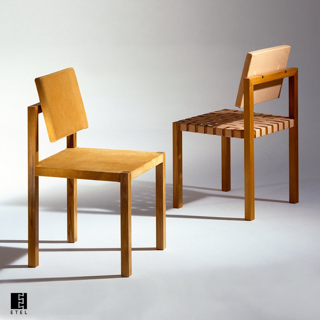 The inclination and soft upholstery of the backrest add a degree of comfort to the chair. The seat is available either fully upholstered or with saddle leather webbing.